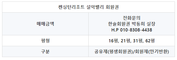 ■ 켄싱턴리조트 설악밸리 회원권 ■
