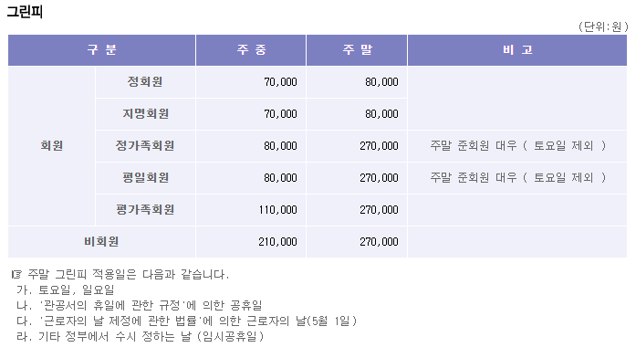 아시아나cc 회원권은 정회원권으로 정회원 1인과