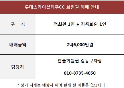 롯데스카이힐제주CC 골프 회원권 매매 안내