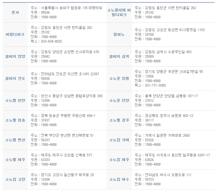 운영체인 : 비발디파크, 델피노, 양평, 천안, 단양, 쏠비치