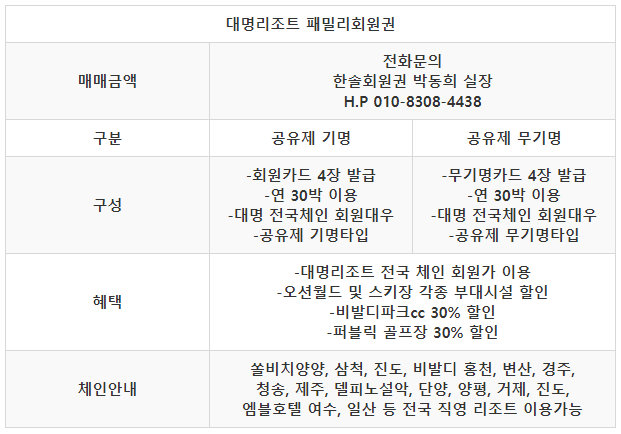 ◆ 대명리조트 패밀리회원권 안내 ◆