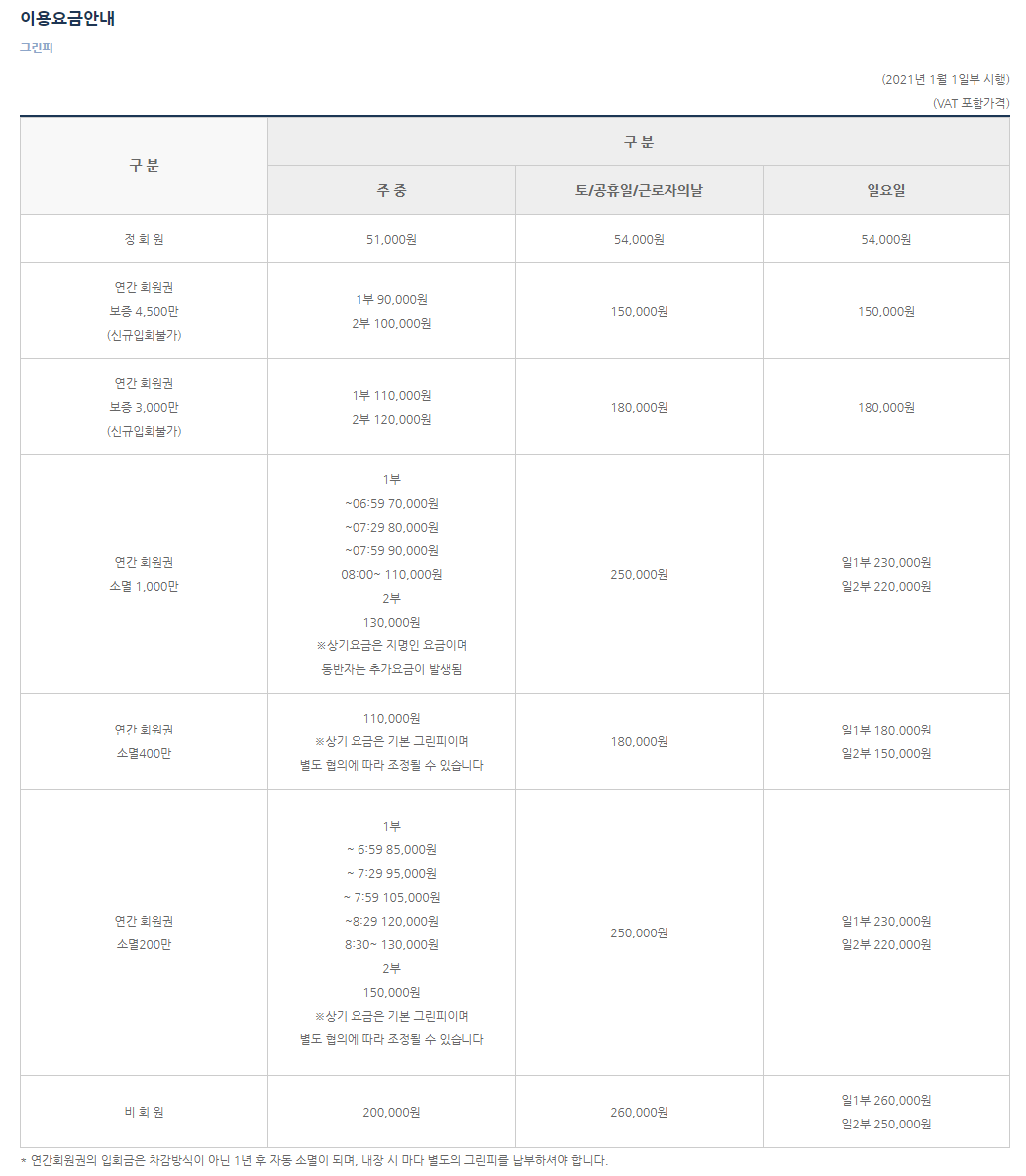 ● 송추cc 이용요금 및 예약 안내