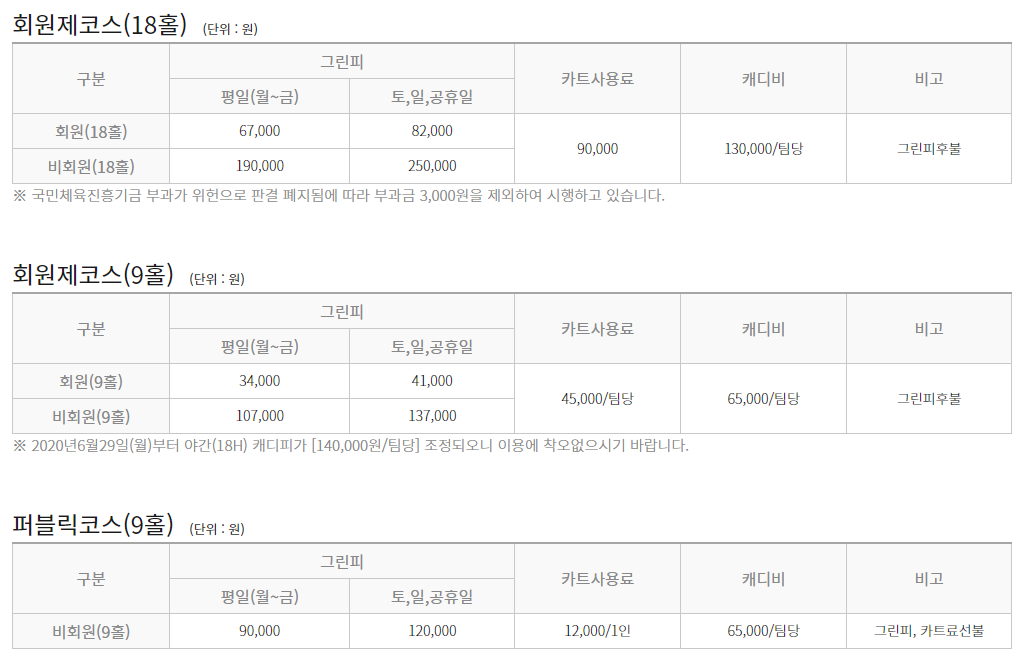 ◆ 태광cc 이용요금 및 예약 안내 ◆