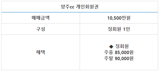 양주cc의 회원권은 개인회원권과 법인회원권으로
