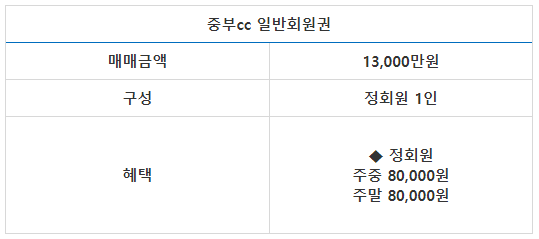 중부cc의 회원권은 일반회원권으로 정회원 1인으로