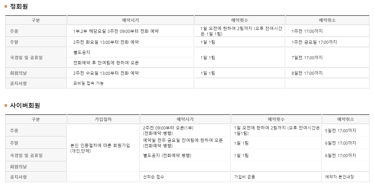 구성되어 있습니다. 여자회원은 입회가 불가하며 개인과 법인간의