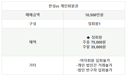 ● 한성cc 회원권 안내