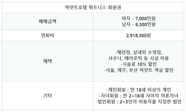 하얏트호텔휘트니스회원권 혜택과 정보