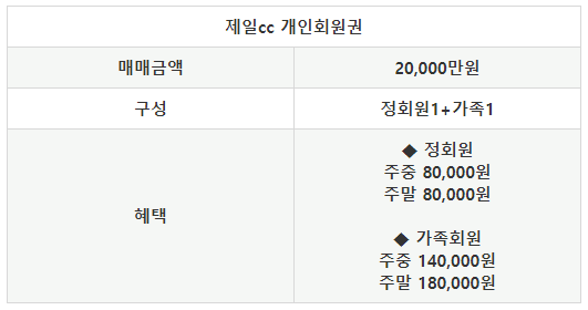 제일cc의 회원권은 개인회원권으로 정회원 1인과