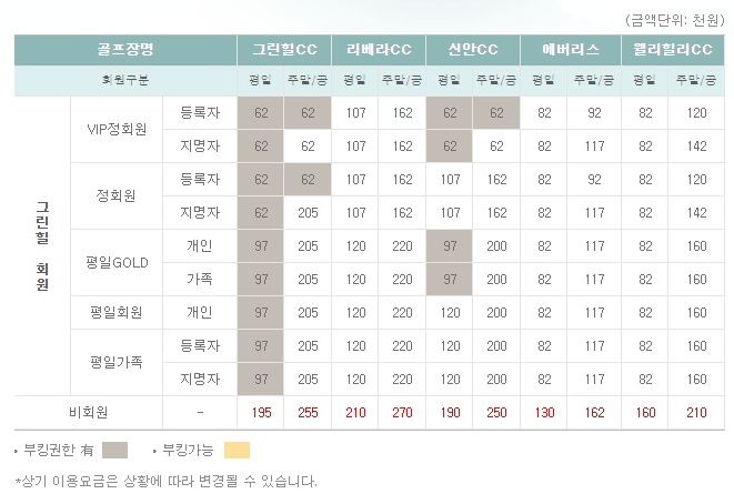 ■ 그린힐cc 이용요금 및 예약 안내 ■