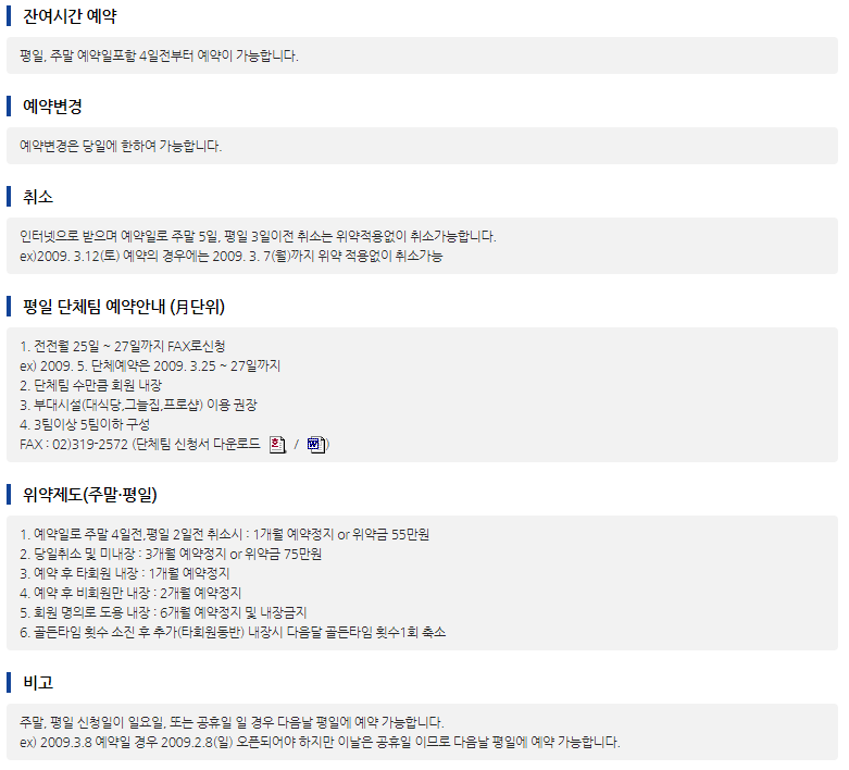 ◆ 코리아cc 이용요금 및 예약 안내 ◆