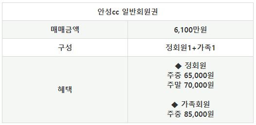 안성cc의 회원권은 일반회원권으로 정회원 1인과