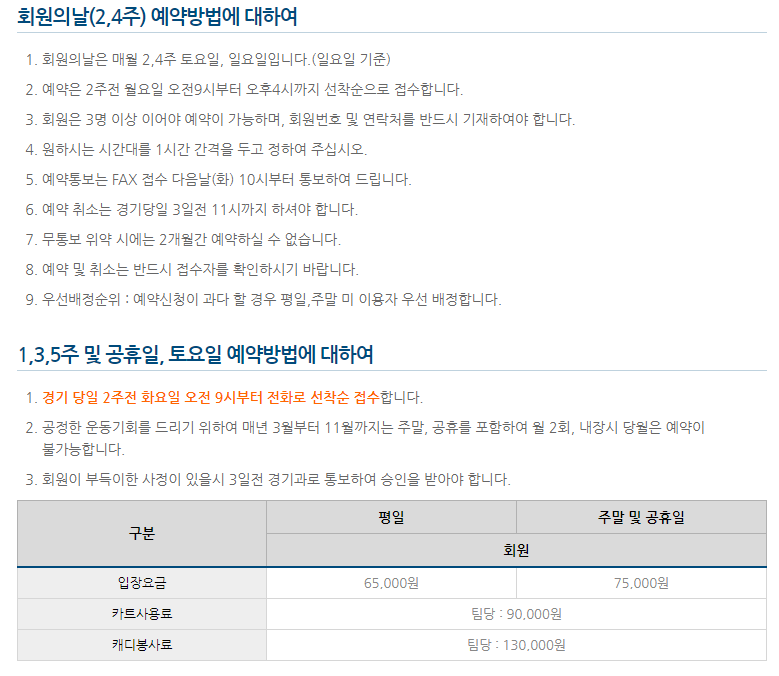 ● 안성cc 이용요금 및 예약 안내 ●