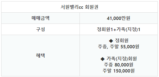 서원밸리cc의 회원권은 정회원 1인과 가족(지정)회원 1인으로