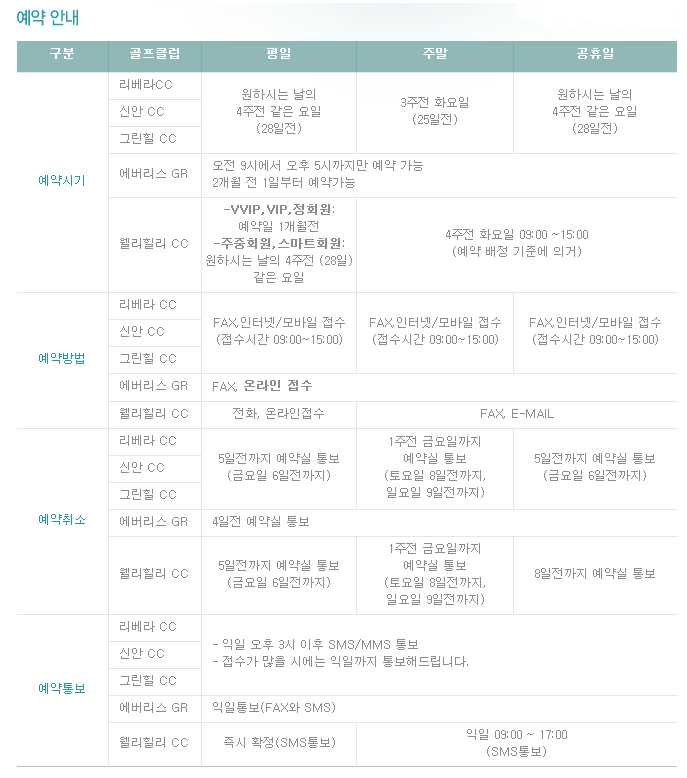 ■ 리베라cc 이용요금 및 예약 안내 ■