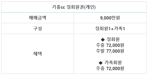 기흥cc의 회원권은 개인 정회원권으로 정회원 1인과
