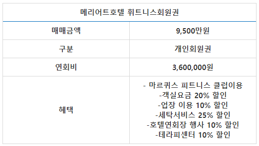 ◆ 메리어트호텔 휘트니스 회원권 안내 ◆
