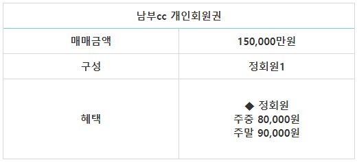남부cc의 회원권은 개인회원권으로 정회원 1인으로