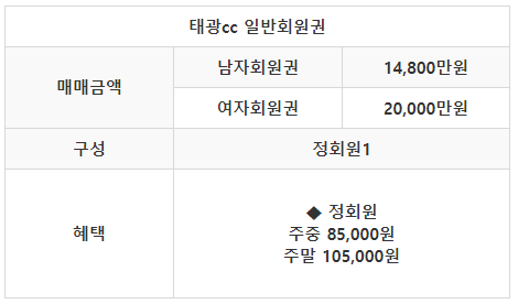태광cc의 회원권은 일반회원권으로 남자와 여자가