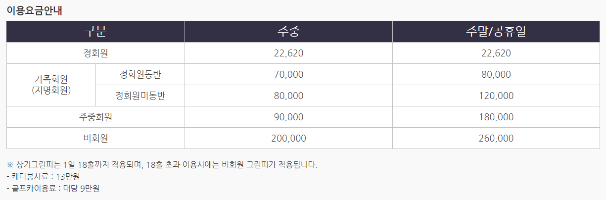 ● 프리스틴밸리cc 이용요금 및 예약 안내 ●