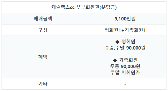 캐슬렉스cc의 회원권은 부부 분담금 회원권으로 정회원 1인과