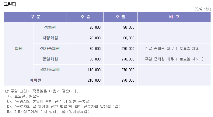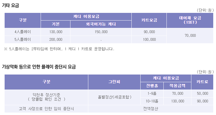 ◆ 아시아나cc 이용요금 안내 ◆