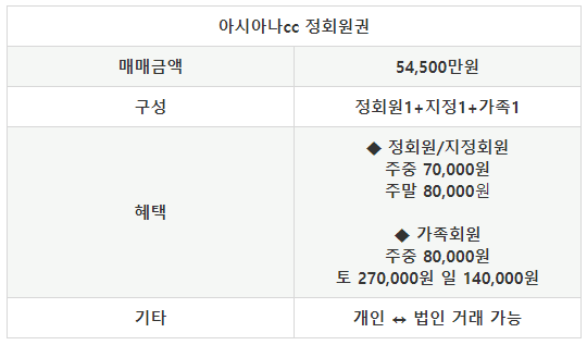 ◆ 아시아나cc 회원권 안내 ◆