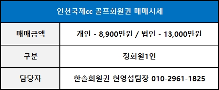 ◀ 인천국제cc 골프회원권 매매가격 ▶