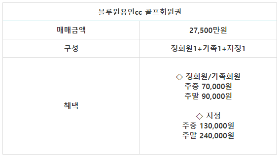 블루원용인cc의 회원권은 정회원 1인과 가족회원 1인,