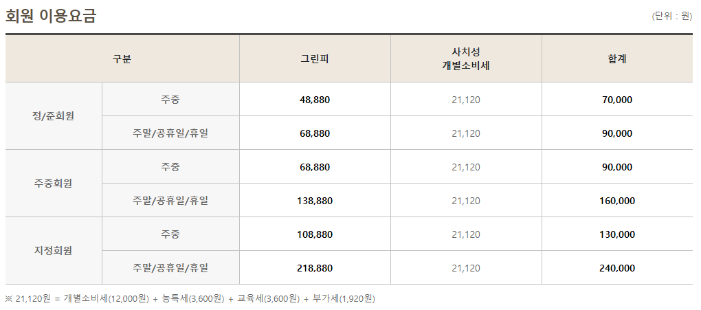 지정회원 1인으로 구성되어 있습니다. 회원권의 분양가와 종류에