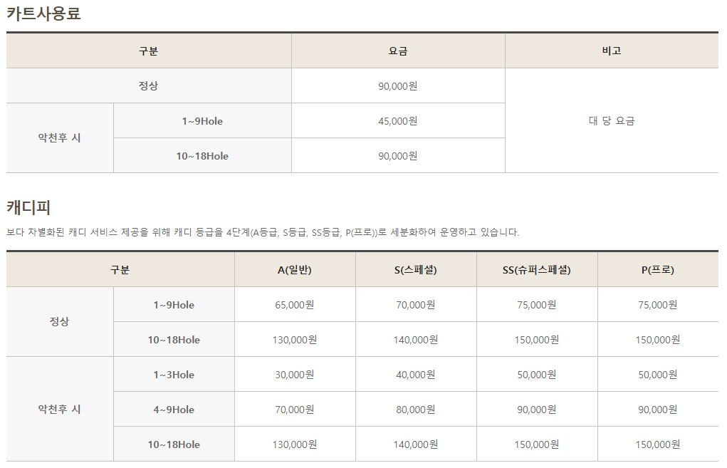 ◆ 블루원용인cc 이용요금 및 예약 안내 ◆