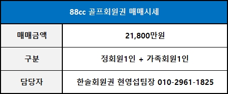 ■ 88cc 골프회원권 추천매물 안내 ■
