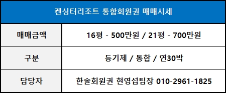 ◀ 켄싱턴리조트 통합회원권 매매가격 ▶