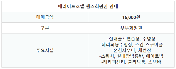 ● 메리어트호텔 헬스회원권 혜택과 정보 안내드립니다. ●
