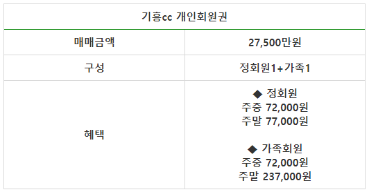 기흥cc의 회원권은 개인회원권으로 정회원 1인과