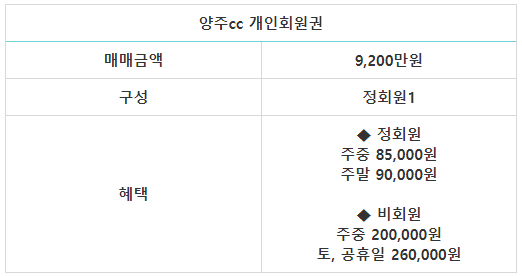 양주cc의 회원권은 개인회원권으로 정회원 1인으로