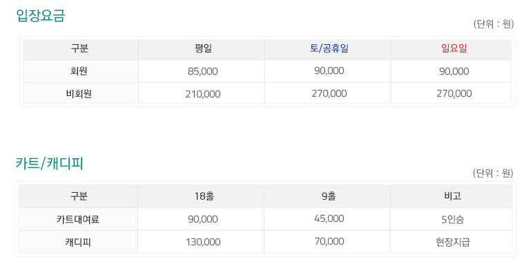 ◆ 양주cc 이용요금 및 예약 안내 ◆