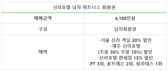 오늘 알아볼 신라호텔의 헬스회원권은 남자회원권으로