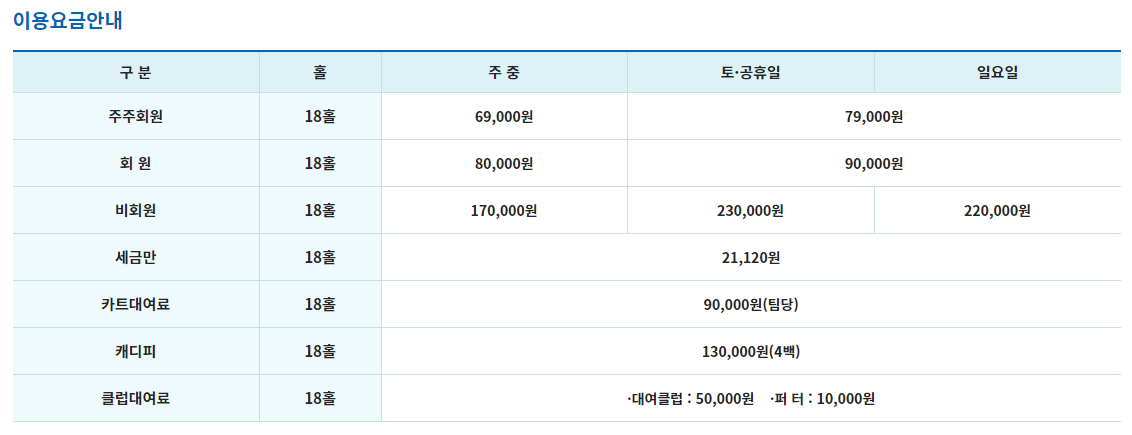 ◆ 여주cc 이용요금 및 예약 안내 ◆