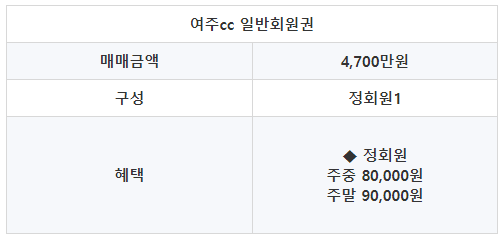 여주cc 회원권은 일반회원권으로 정회원 1인으로