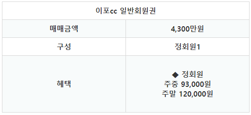 이포cc의 회원권은 일반회원권으로 정회원 1인으로