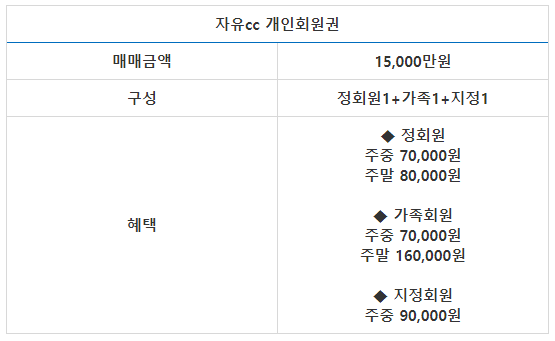 자유cc의 회원권은 개인회원권으로 정회원 1인과