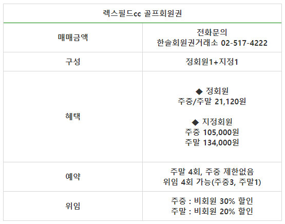 ■ 렉스필드cc 골프회원권 혜택과 정보 안내드립니다. ■