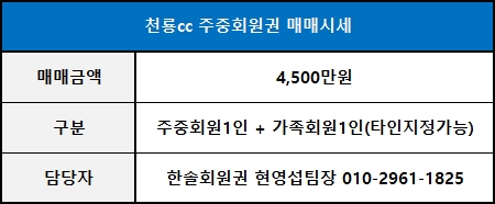 ☞ 천룡cc 주중회원권은 가족회원으로 타인지정이 가능합니다.