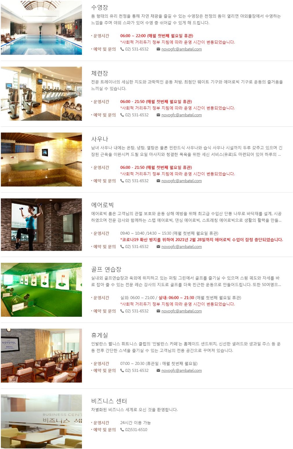 주요시설 : 수영장, 체련장, 사우나, 에어로빅, 골프연습장 등