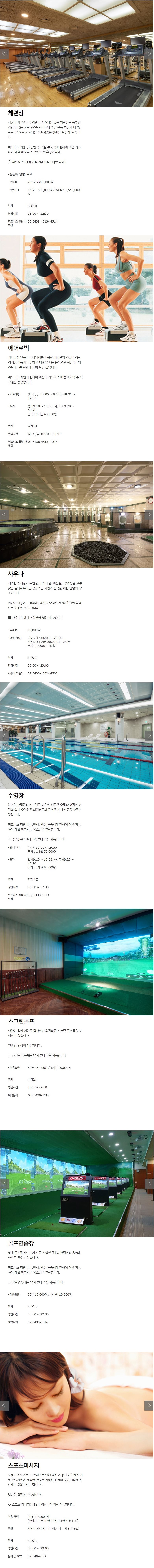 주요시설 : 체련장, 사우나, 실내 수영장, 실내 골프장 등