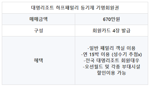 오늘은 대명리조트의 하프패밀리 기명회원권에 대해서