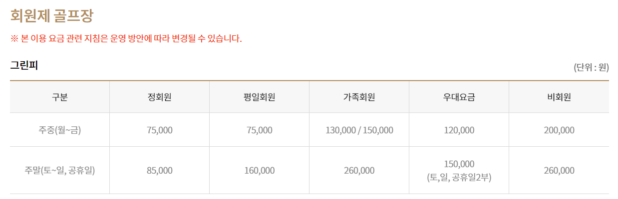 ● 지산cc 이용요금 및 예약 안내 ●