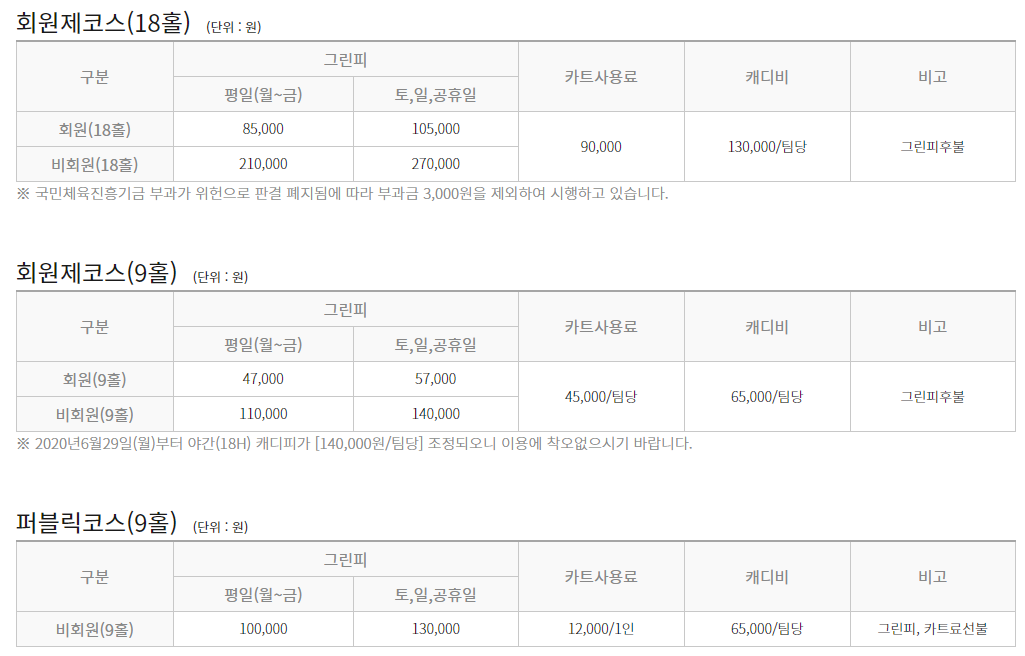 ■ 태광cc 이용요금 및 예약 안내