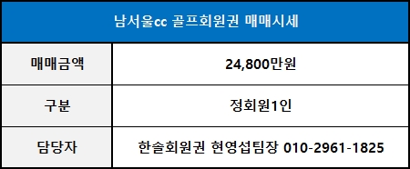 ■ 남서울cc회원권 추천매물 안내 ■